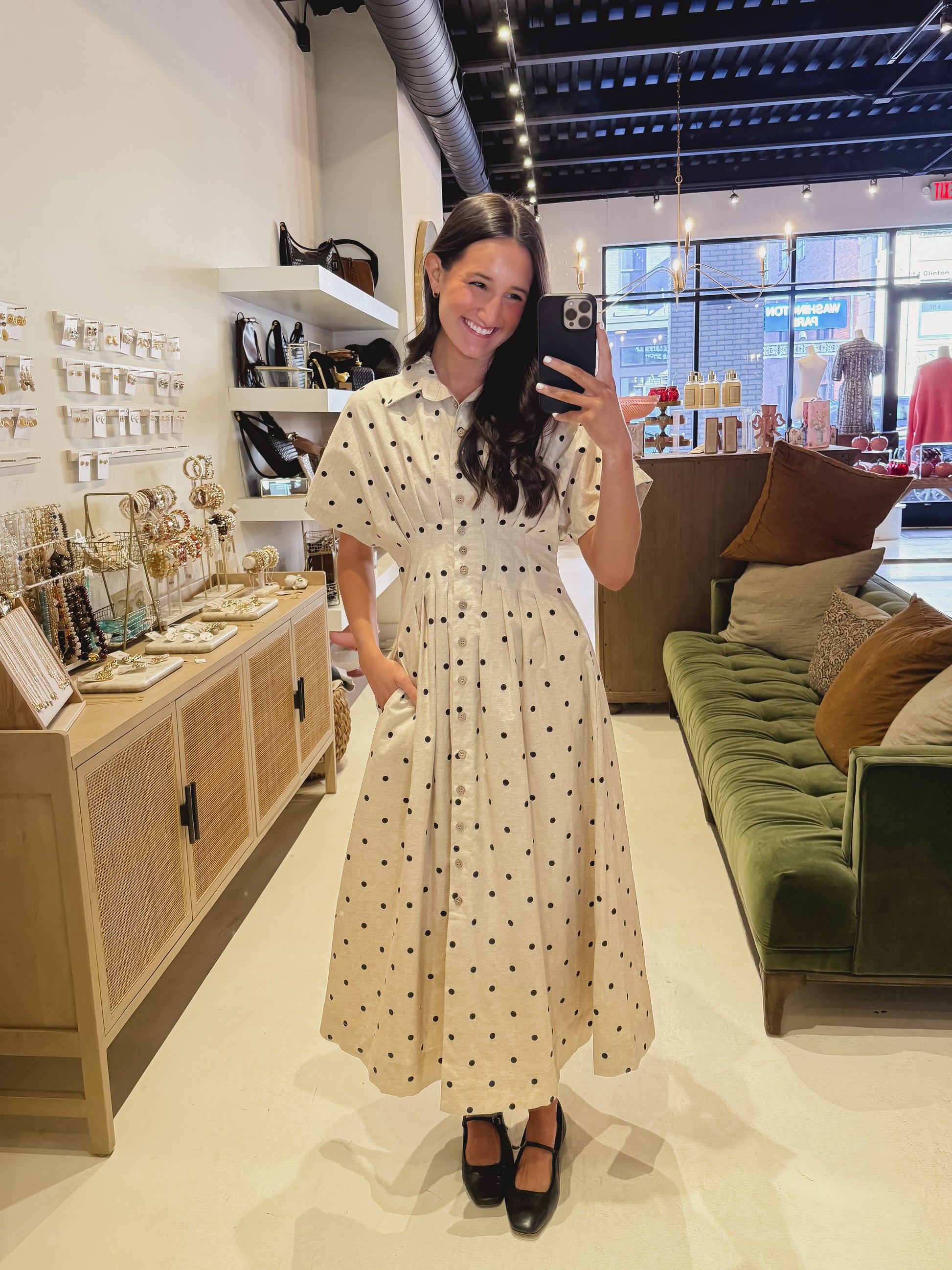Beige Polka Dot Dress