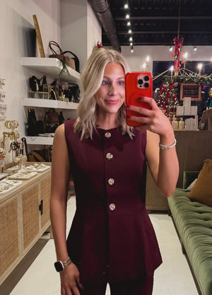 DOORBUSTER! Maroon Gold Button Sleeveless Top