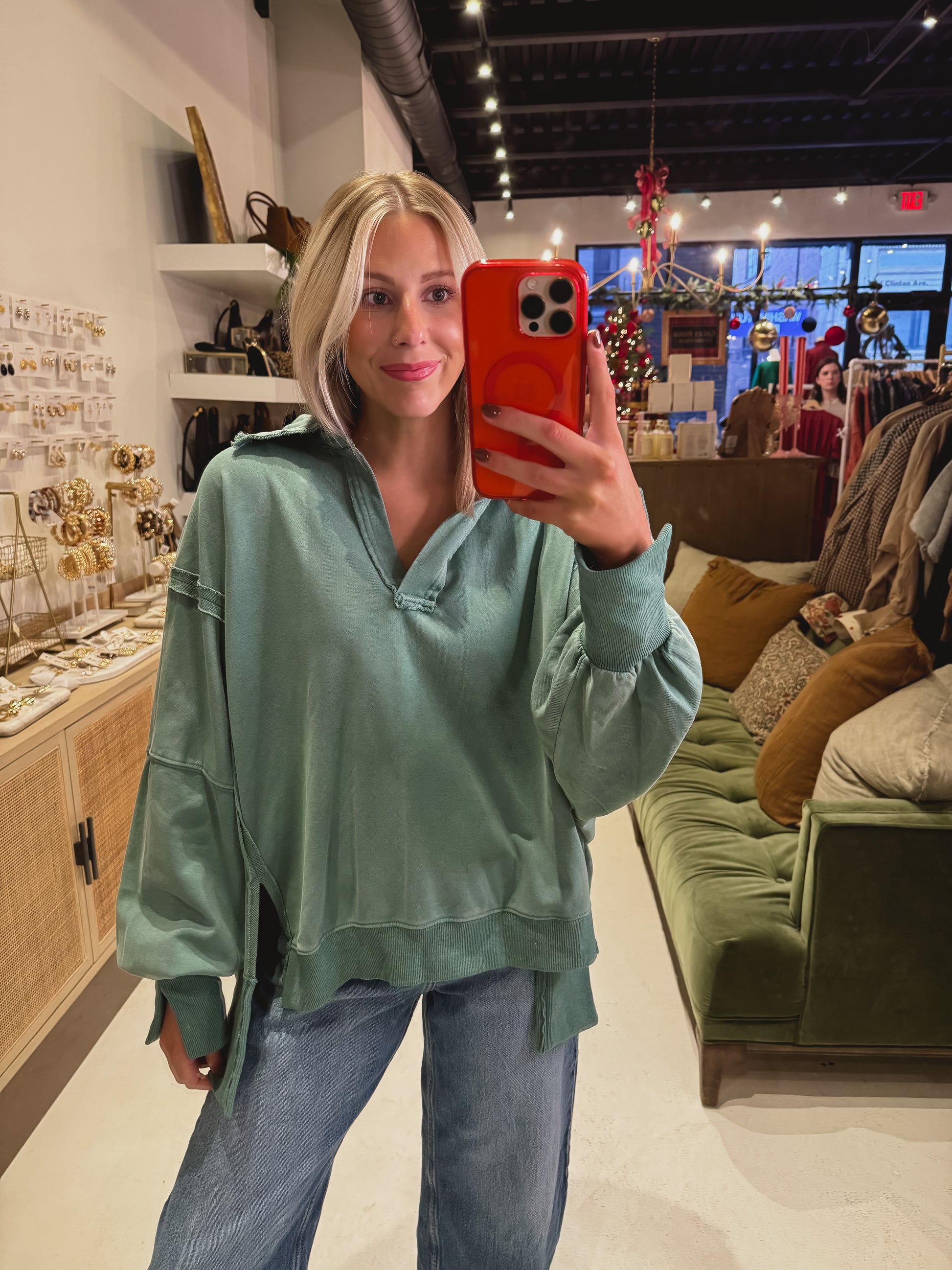 DOORBUSTER! Mineral Washed Collared Oversized Top in Green