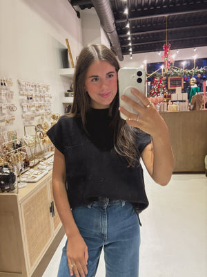 DOORBUSTER! The Mockneck Pocket Sweater in Black