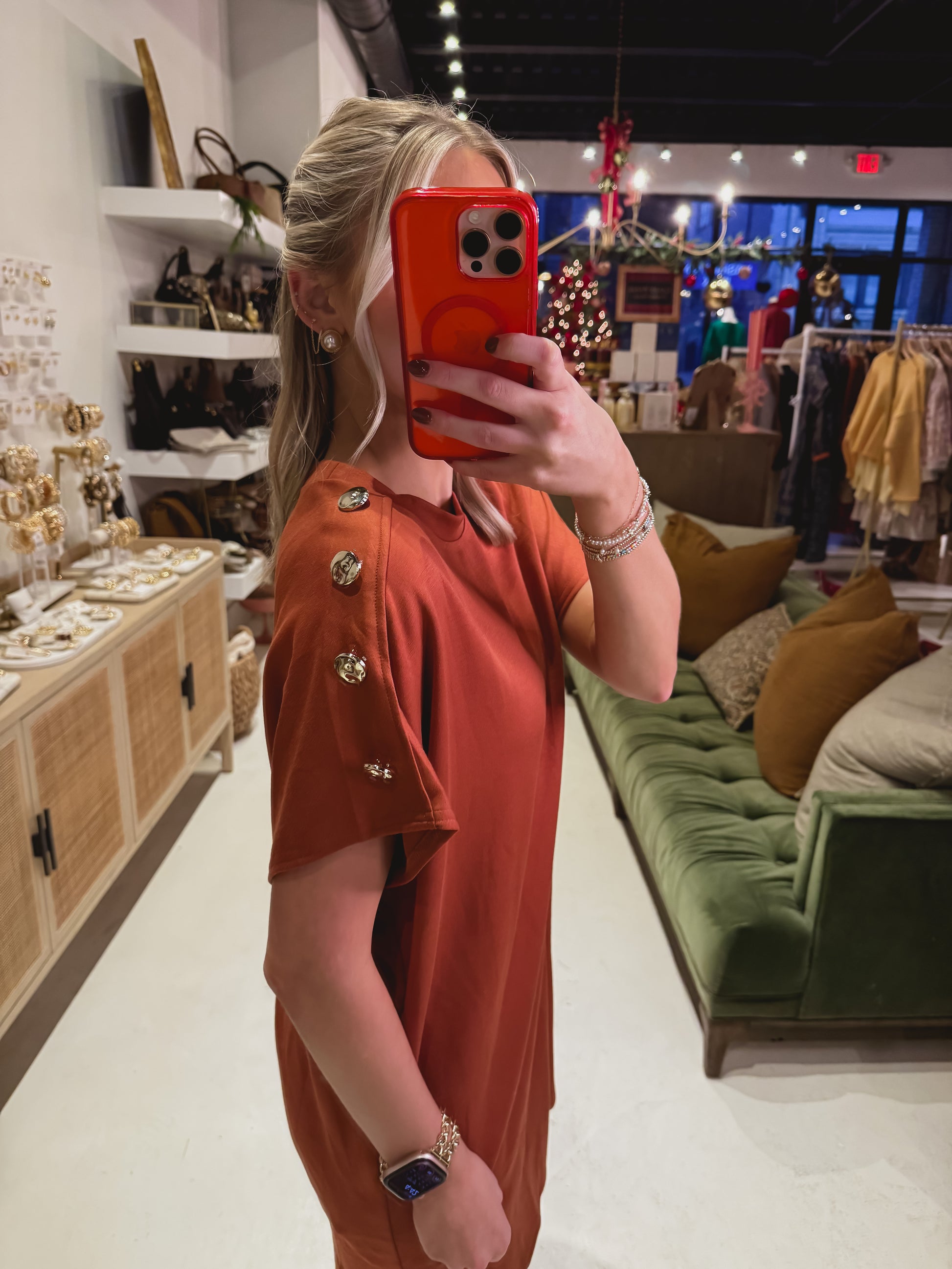 DOORBUSTER! The Relaxed Gold Button Shoulder Dress