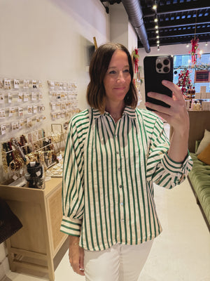 DOORBUSTER! Green and White Striped Top