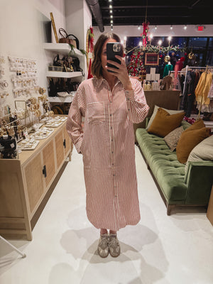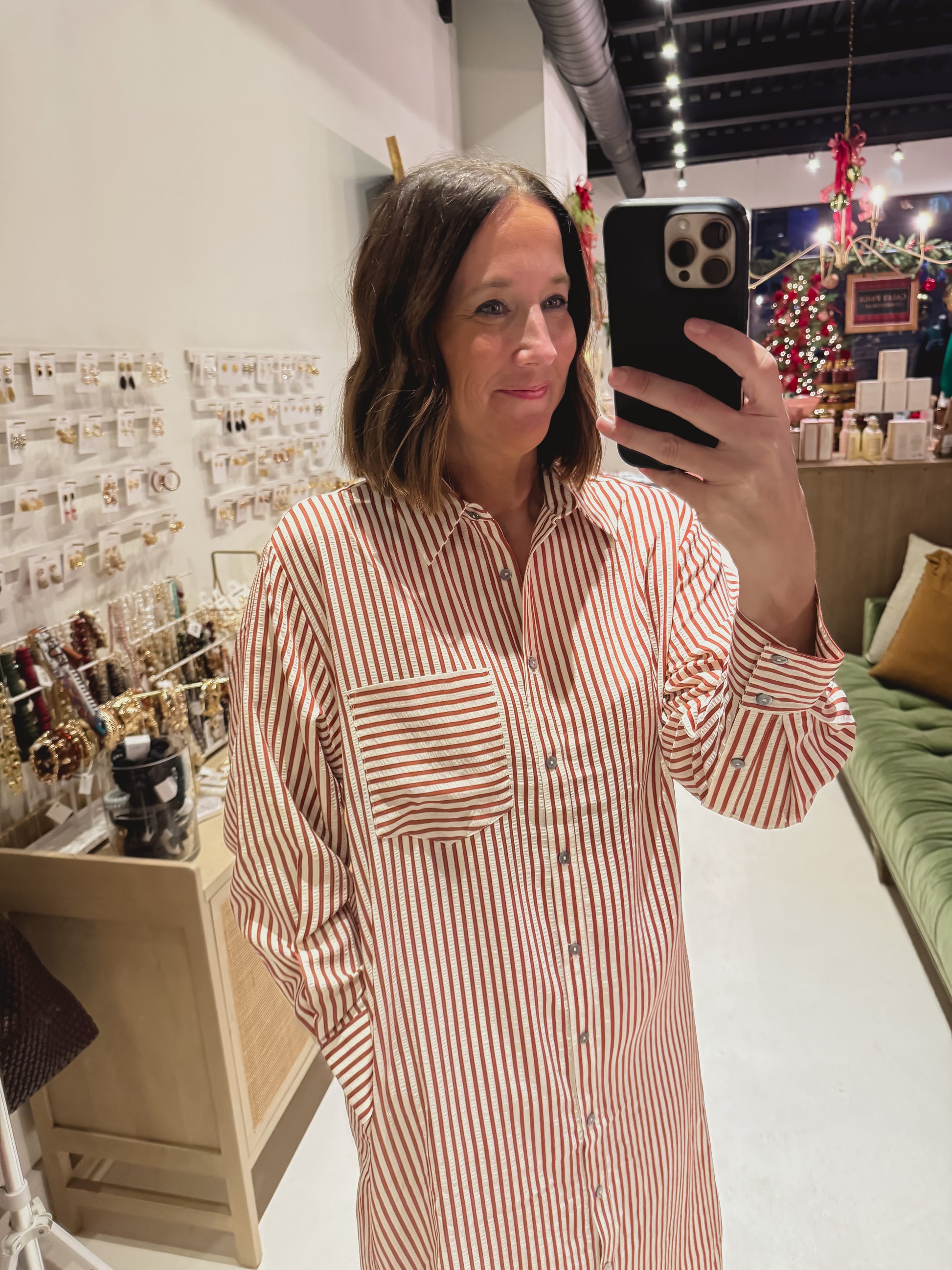 DOORBUSTER! The Collared Striped Shirt Dress in Rust