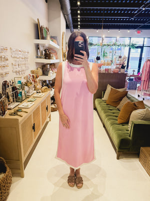 The Pink Contrast Trim Sleeveless Dress