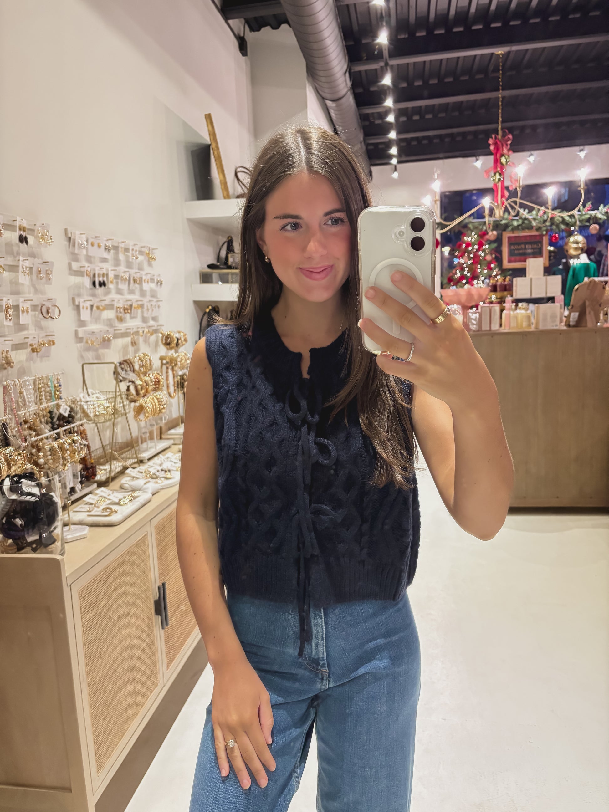 DOORBUSTER! Tie Front Cable Knitted Vest