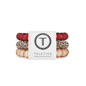 Wild SIde Large Hair Ties in Burgundy and Beige offer a strong grip without damage, doubling as a chic wrist accessory when not in use. Your new favorite hair essentials all year round.