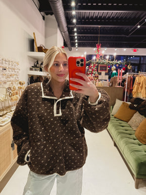 The Brown Fuzzy with Cream Tiny Hearts Pullover