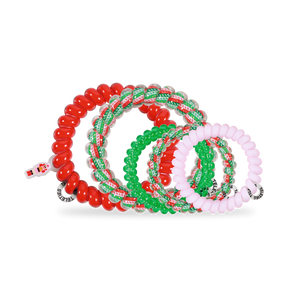 Hold your hair in place with ease and style! You Crack Me Up Mix Pack Hair Ties in Red, Green, and Pink offer a strong grip without damage, doubling as a stylish bracelet when not in use. Your new favorite hair essentials all year round.